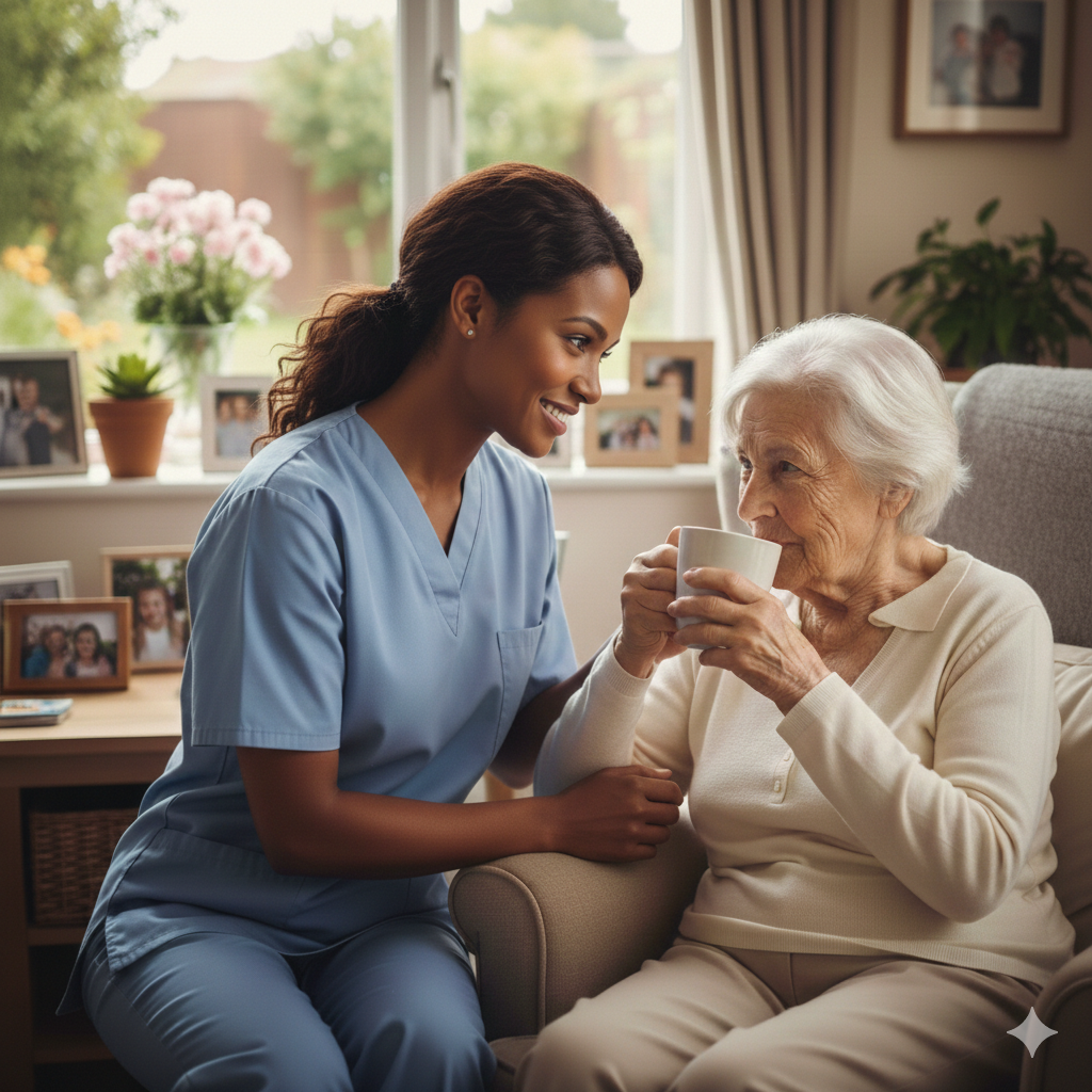 Especialista en atención cuidadosa y apoyo respetuoso a personas mayores.